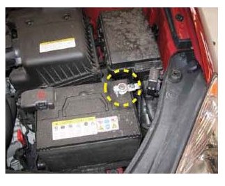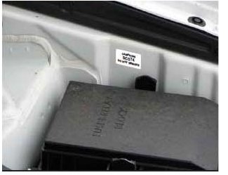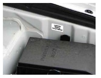 18. Install an SC074 campaign completion sticker on the inner panel above the under hood fuse box.