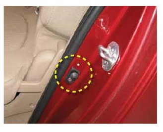 2. Open the left rear door and inspect the area above the door check switch for a yellow paint mark. If a yellow paint mark is present above the door check switch, install an SC074 campaign completion sticker on the inner panel above the under hood fuse box. NO FURTHER ACTION IS REQUIRED.