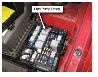 2. Remove the fuel pump relay. Start the engine and run until engine stalls. Crank the engine an additional five (5) seconds; this will ensure the fuel system is depressurized for service.