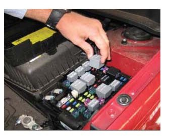 17. Reinstall fuel pump relay and engine compartment fuse & relay cover. Reconnect negative battery cable.