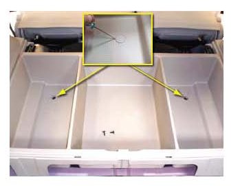 5. Remove the two (2) front storage well fastener(s). Lift the front storage assembly from the vehicle.