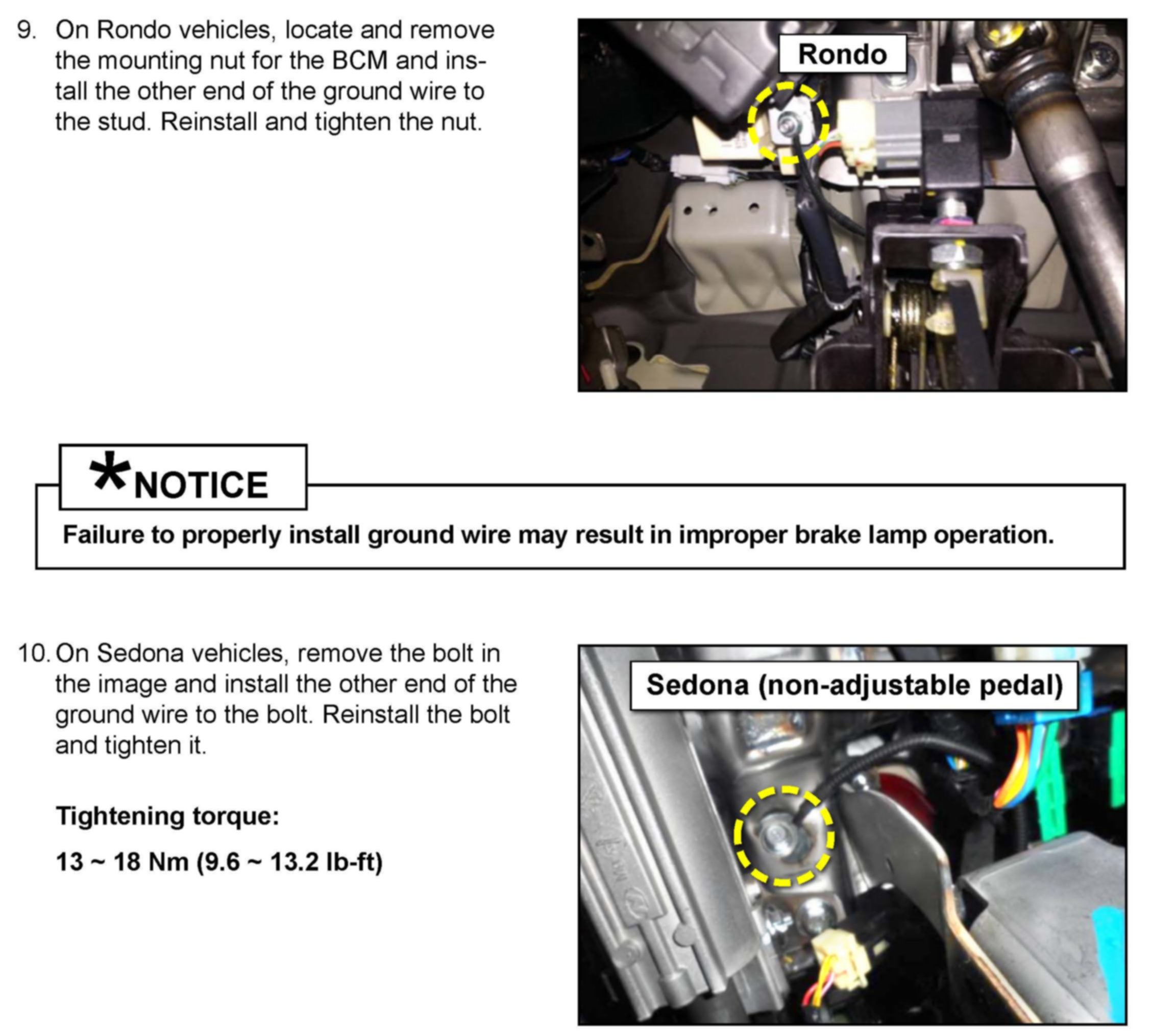 Replacement Procedure 2-Applies to Sedona (VQ) Vehicles with Adjustable Pedals above.