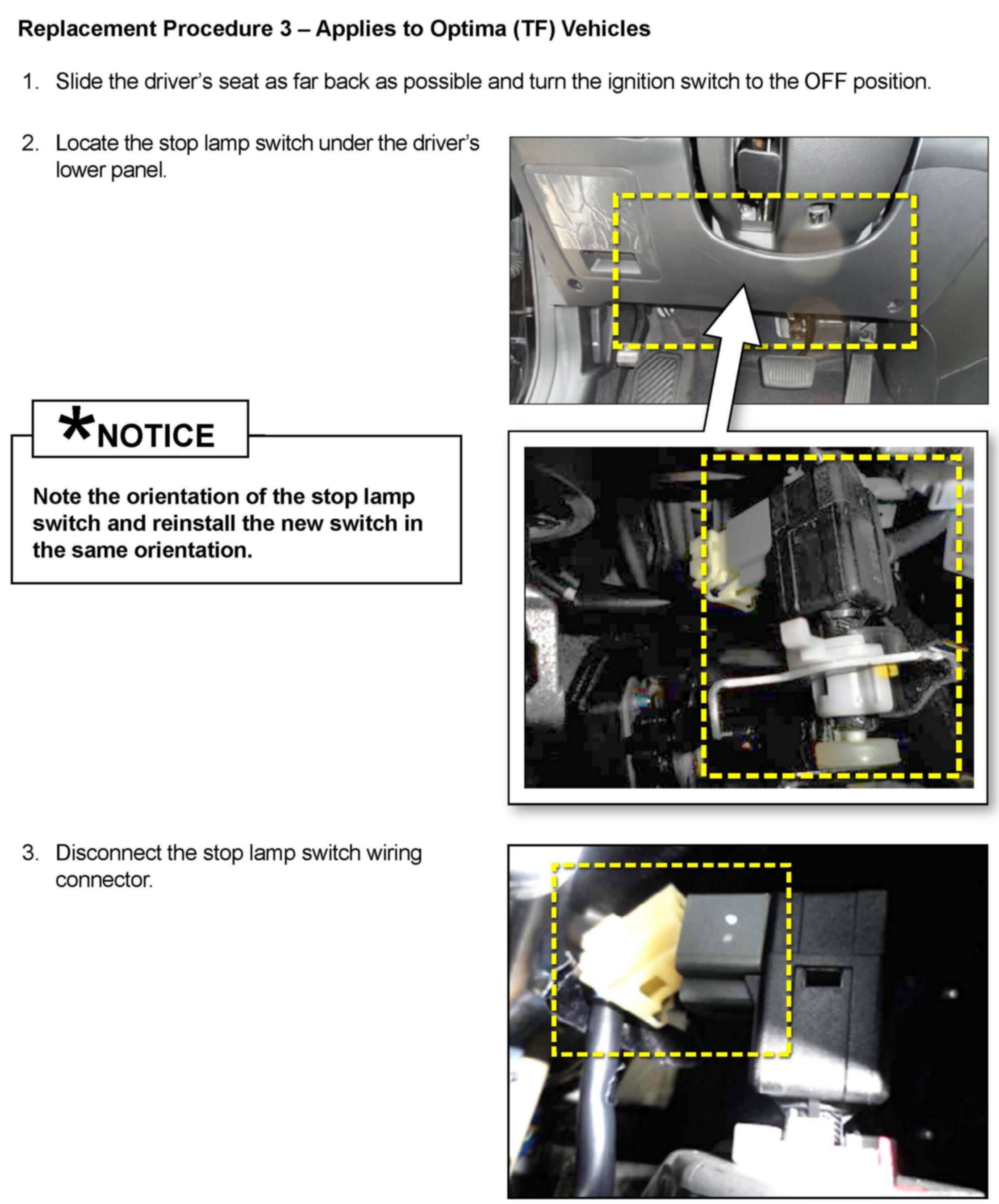 To correct this condition, and improve customer satisfaction, Kia is launching this Safety Recall Campaign to replace the stop lamp switch on all affected vehicles.