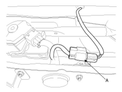 2. Disconnect the windshield deicer connector (A) from the wiper motor linkage.