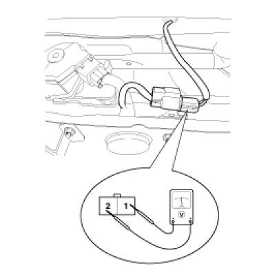 4. Turn the ignition switch ON and the windshield deicer switch ON, then measure the voltage between the terminals of harness side deicer connector.