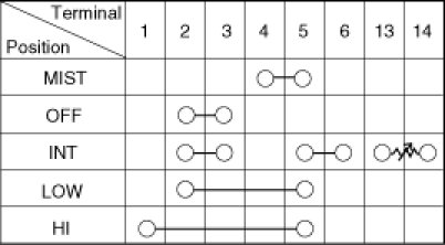 Check for continuity between the terminals while operating the wiper and washer switch. If it is not normal condition, replace wiper and washer switch.