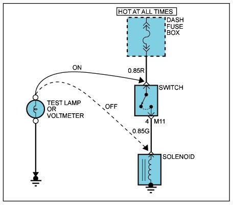Voltage in these circuits should be tested only with a 10-megaohm or higher impedance DVOM.Never use a test lamp on circuits that contain solid state modules. Damage to the modules may result.