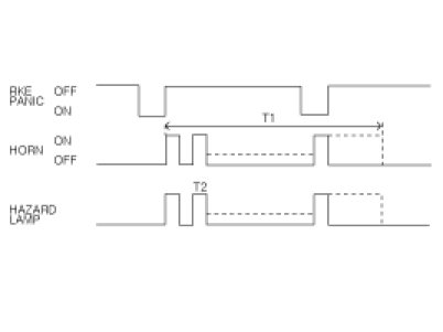 (2) When PANIC on the RKE is activated while in DISARM mode, the horn alarm and hazard lamps will activate for 27 seconds.