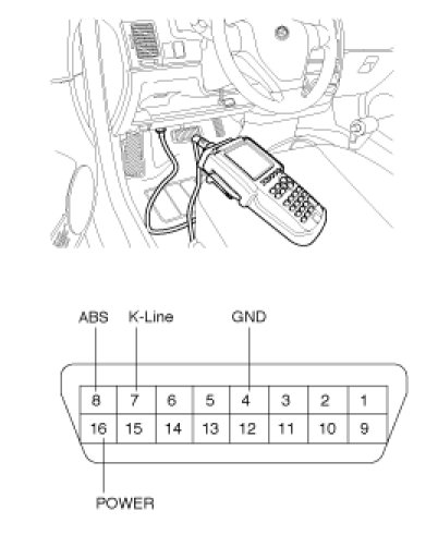 2. Connect the Hi-scan (pro) to the 16P data link connector located behind the driver's side kick panel.