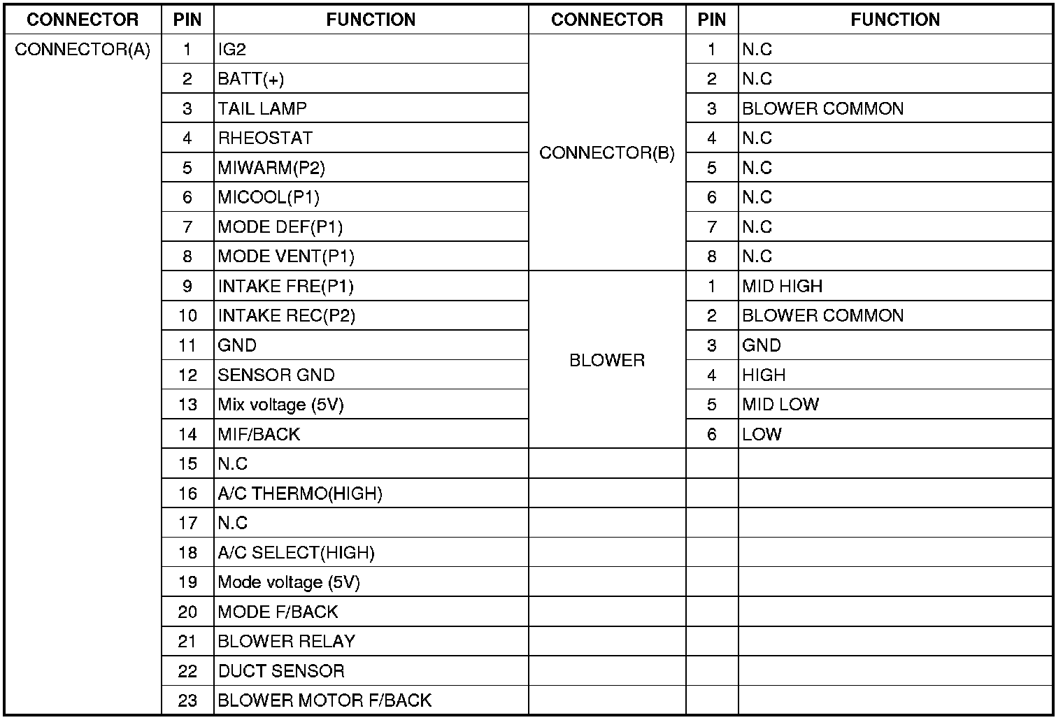 CONNECTOR PIN FUNCTION