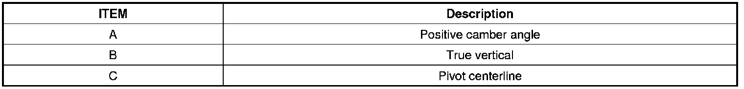 Camber is pre-set at the factory and doesn't need to be adjusted. If the camber is not within the standard value, replace the bent or damaged parts.