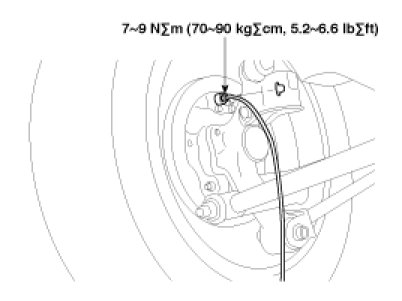 3. Loosen the right-rear brake bleed screw to allow air to escape from the system. Then tighten the bleed screw securely.