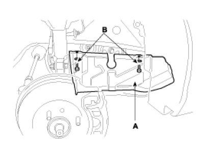 14. Install the timing belt lower cover (A) with 5 bolts (B).
