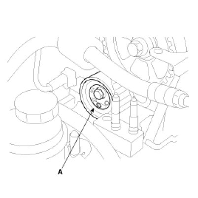 12. Remove the crankshaft pulley bolt (B) and crankshaft pulley (A).