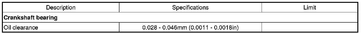 Main bearing cap bolt 27.5 - 31.4 Nm (2.8 - 3.2 kgf.m, 20.3 - 23.1 lb-ft) + 60 - 64 °