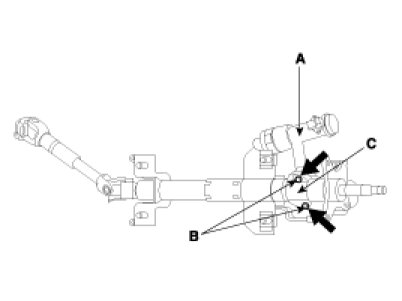 3. Disassembly the key lock assembly (A) from the steering column and shaft assembly (B).