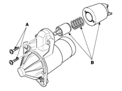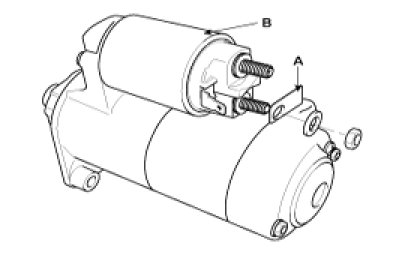 1. Disconnect the M-terminal (A) on the magnet switch assembly (B).