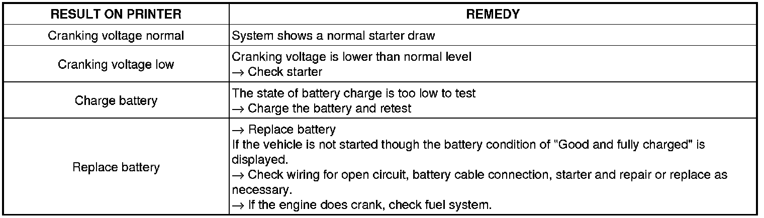 Take a relevant action according to the test results by referring to the starter test results as given below.