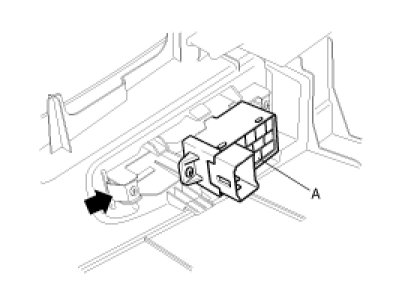 2. Remove the power window main switch (A) by pushing the mounting clip of the power window main switch.