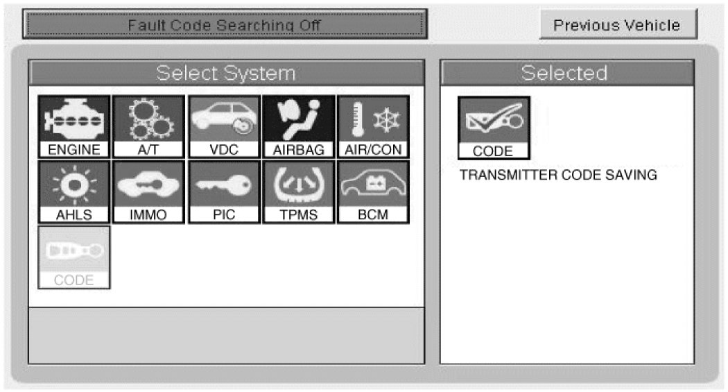 2. Select the vehicle model and then do "CODE SAVING"