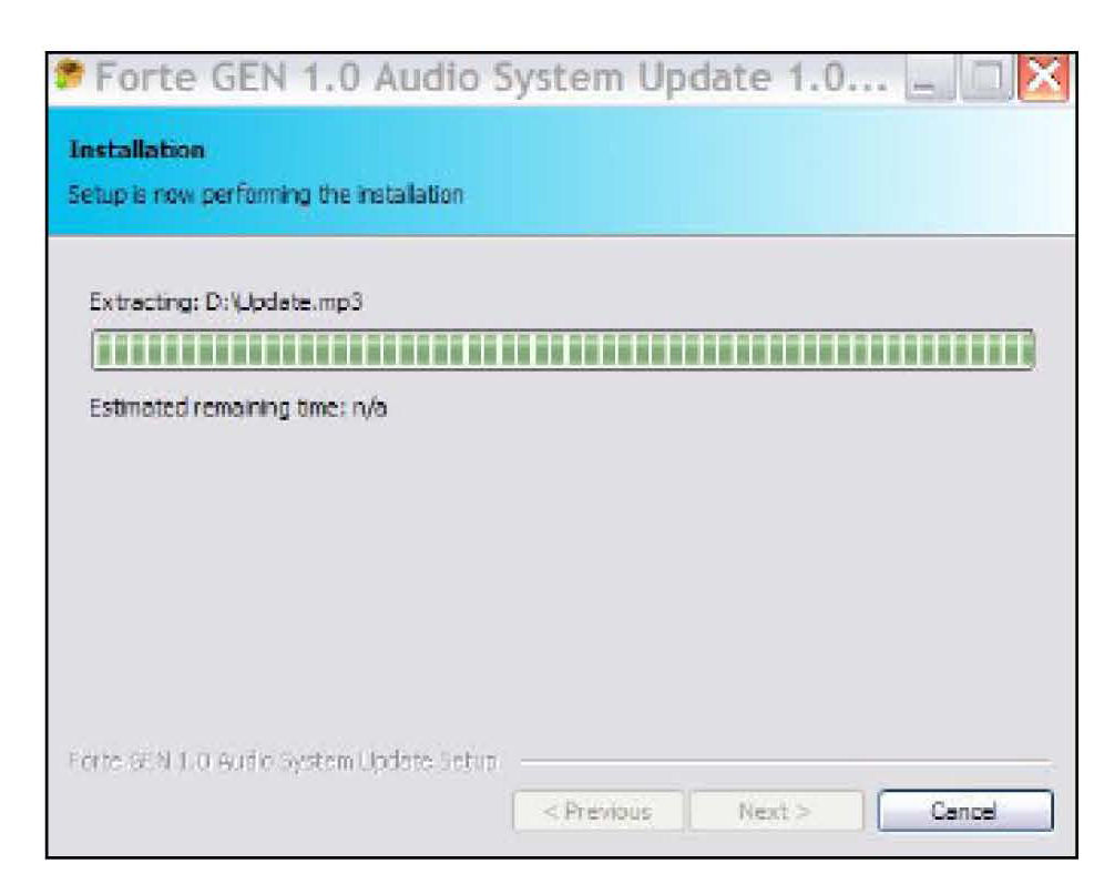 The MICOM software will be updated as indicated on the screen. After completion of the update the audio unit will be automatically