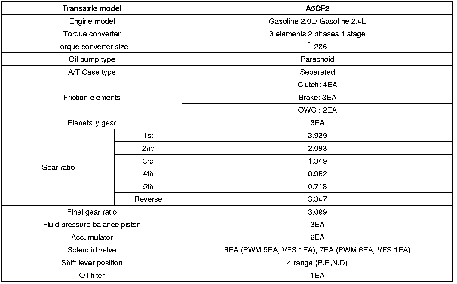 Automatic Transmission/Transaxle: Application and ID: Specifications