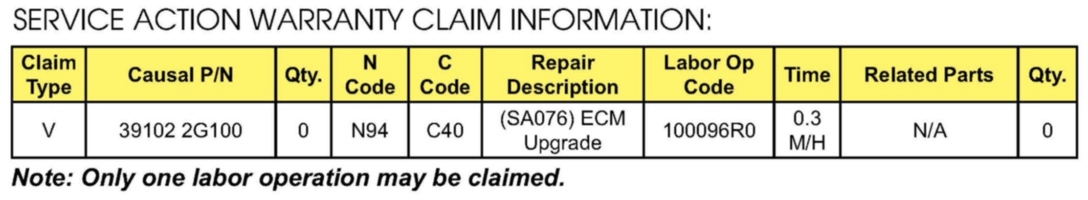 VIN Inquiry data for this repair is provided for tracking purposes only. Kia retailers should reference SA076 when accessing the WebDCS system.