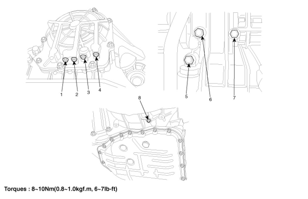 4. Install the drain plug via the gasket, and tighten it the specified torque.