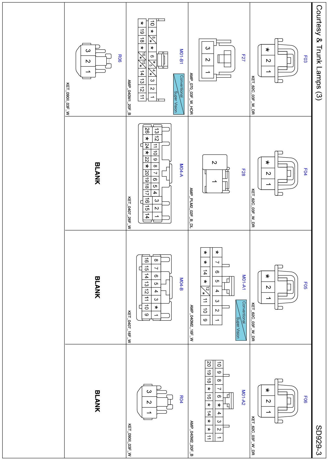Courtesy And Trunk Lamps (3) Connector Pin Outs: