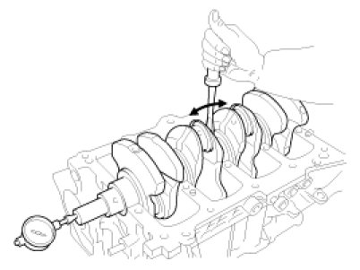 Using a dial indicator, measure the thrust clearance while prying the crankshaft back and forth with a screwdriver.