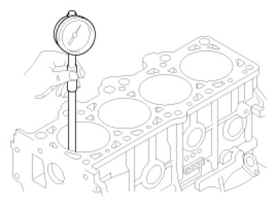 Using a cylinder bore gauge, measure the cylinder bore diameter at position in the thrust and axial directions.
