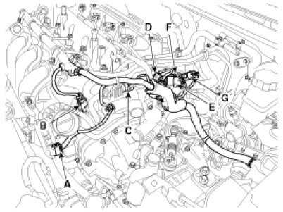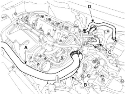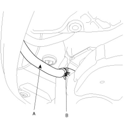 8. Remove the radiator upper hose (A) and lower hose (B).