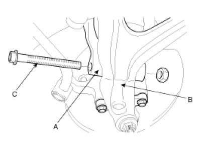 13. Remove the lower arm (B) & fork (A) mounting bolt (C).