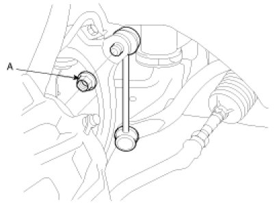 16. Remove the split pin and castle nut and then disconnect the tie rod end (A) with the knuckle.