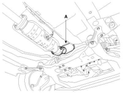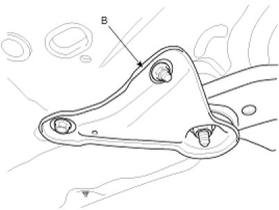 21. Support the sub frame (A) with a floor jack, and then remove the stay (B) and sub frame mounting bolts.