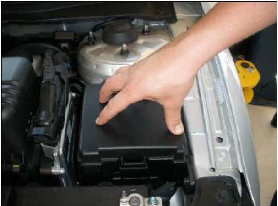 1. Raise the hood and remove the cover for the engine compartment junction box.