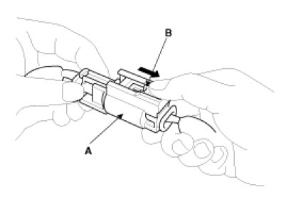 To release the lock, pull the spring-loaded sleeve (A) and he slider (B), while holding the opposite half of the connector.