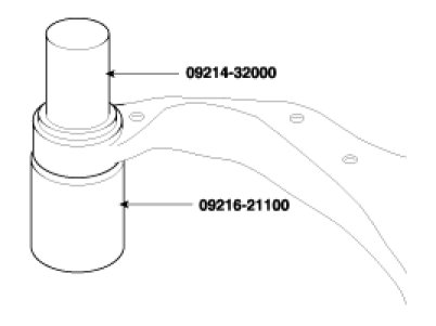 6. Using the special tools (09214-32000 & 09216-21100), install the busing on the lower arm. Remove old bushing on the lower arm.