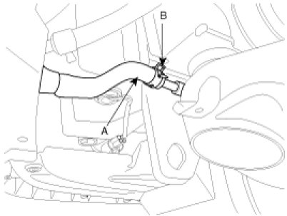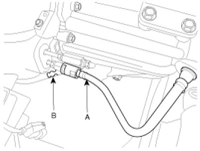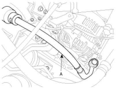 7. Connect the the power steering return hose(A) by tightening the clamp(B).