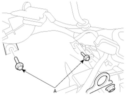 15. Install the transaxle insulator mounting bracket bolts (A).