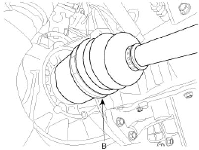 25. Disconnect the driveshafts(A,B) from the transaxle. .