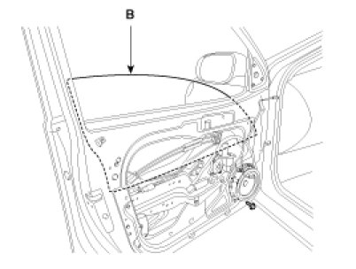2. Carefully adjust the glass (B) until you can see the bolts, then loosen them, separate the glass from the glass run and carefully pull the glass out through the window slot.