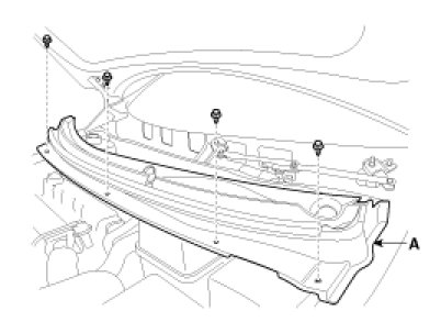 2. Remove the weather strip and the cowl top cover(A) after removing retainers.