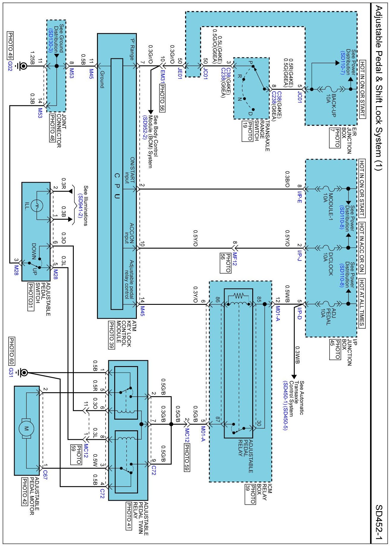 Adjustable Pedal & Shift Lock System (2) Connector Pin Outs: