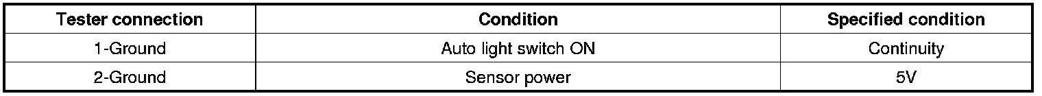 5. If the measured resistance is not specification, substitute with a known-good auto light sensor and check for proper operation.
