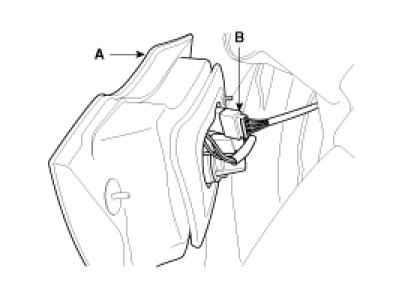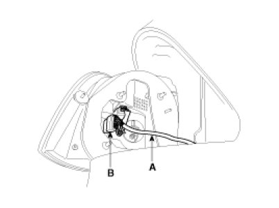 4. Remove the outside rear combination lamp (A) and connector (B).