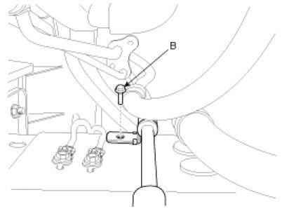 6. Remove the return tube bracket bolts (A, B).