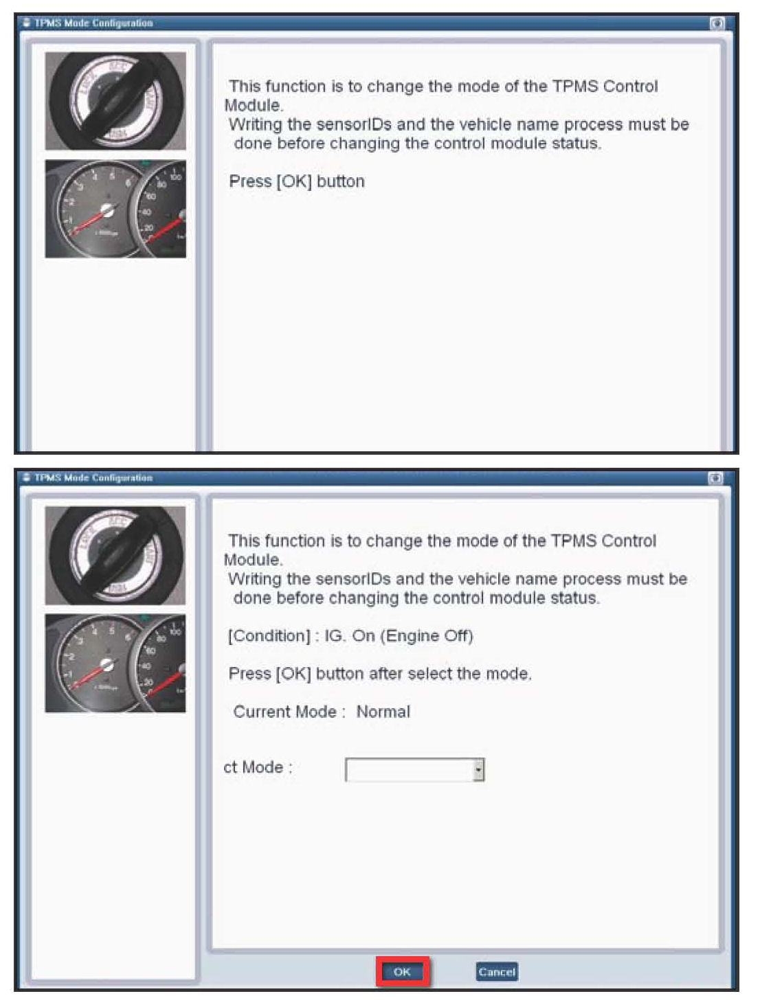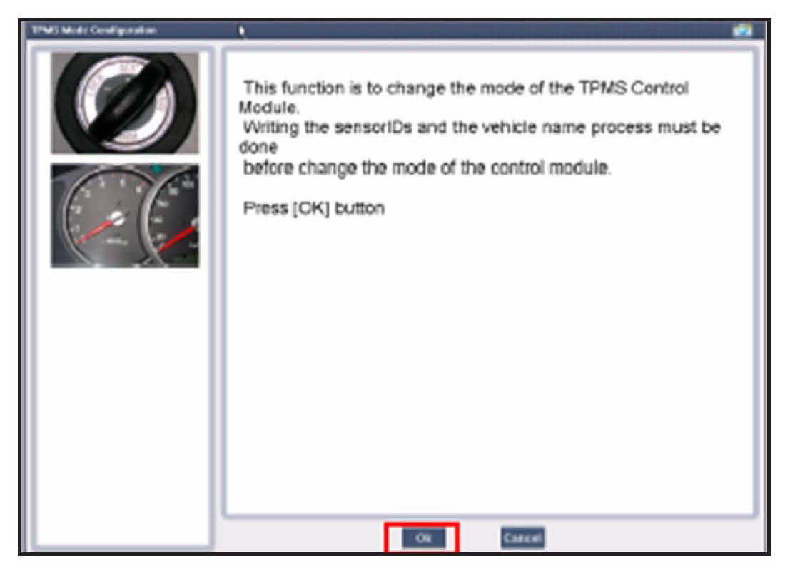 2. After following the procedures given on screen, select the TPMS Control Module mode then press "OK."