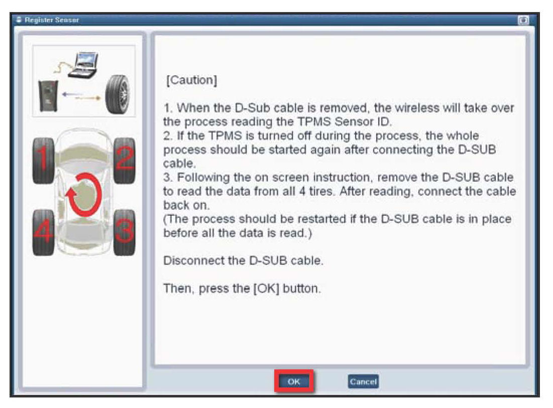 After completing the new TPMS Sensor D registration this message box will appear.