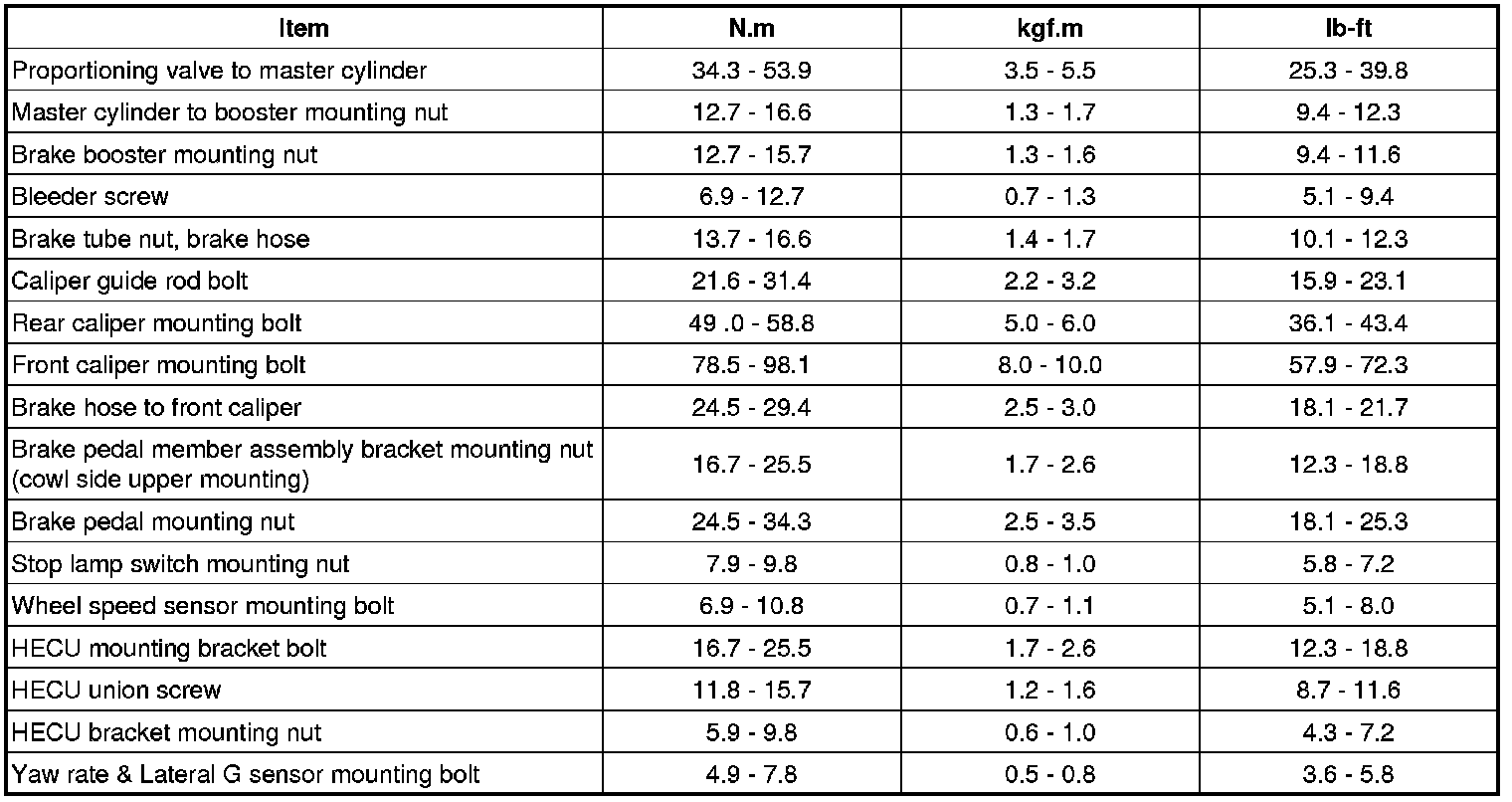Tightening Torques